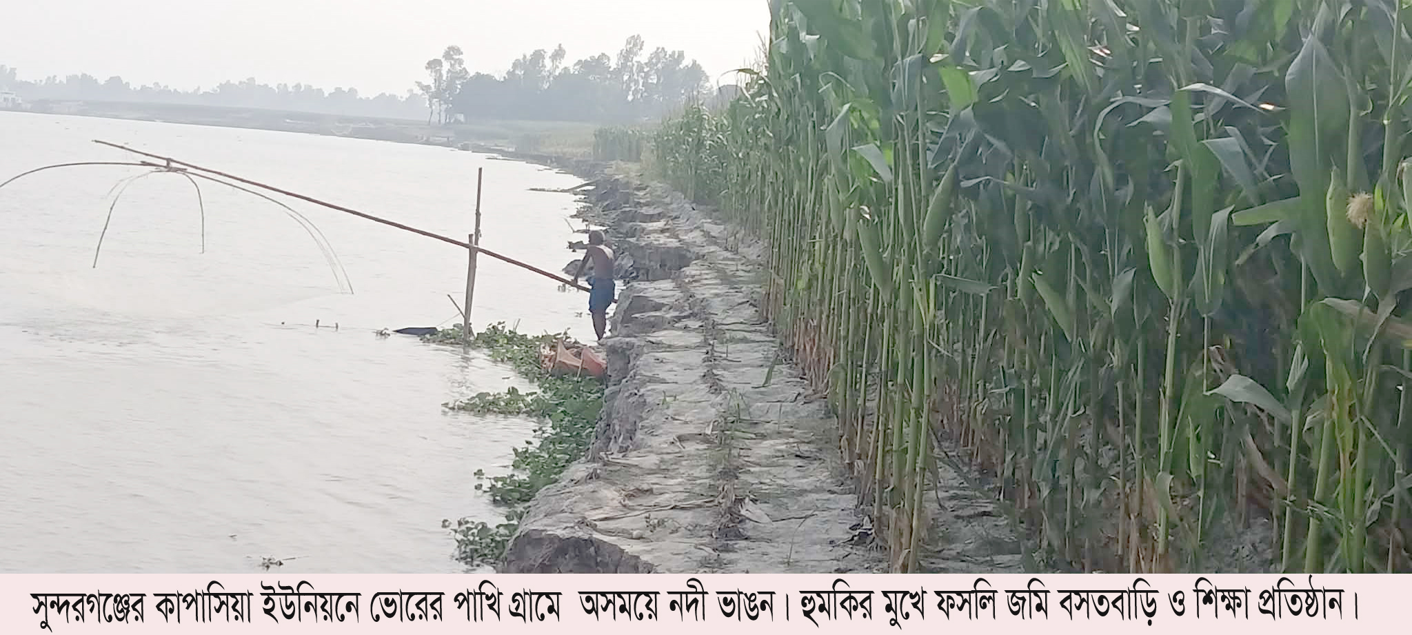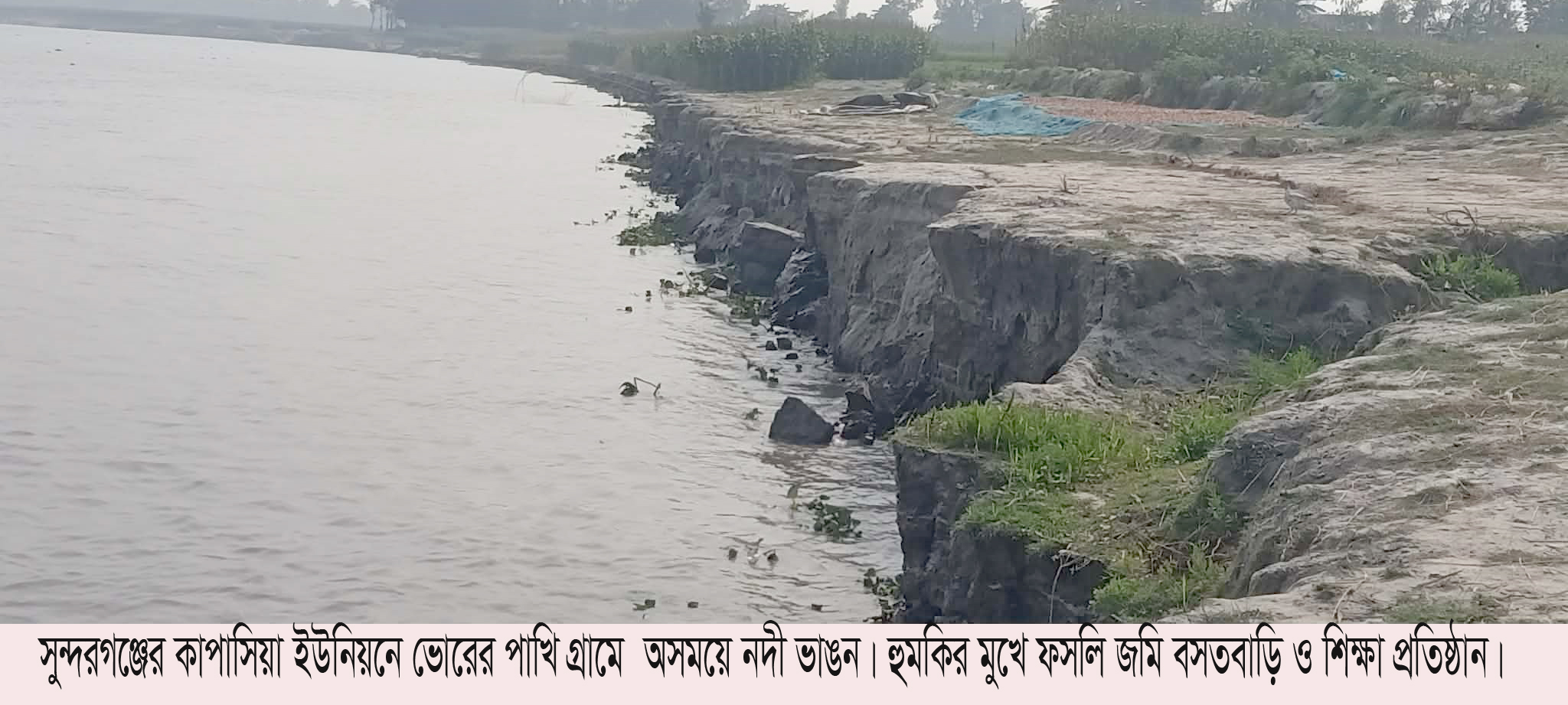 হঠাৎ তিস্তা নদীর পানি বেড়ে যাওয়ায় উপজেলার কাপাসিয়ার ইউনিয়নের উজানে নদী ভাঙন দেখা দিয়েছে। ভাঙনের মুখে পড়েছে শতাধিক একর ফসলি জমি, বসতবাড়িসহ শিক্ষা প্রতিষ্ঠান। ভোরের পাখি সরকারি প্রাথমিক বিদ্যায়টি এখন ভাঙনের মুখে। বিশেষ করে কাপাসিয়ার ভোরের পাখি গ্রামে অসময়ে নদী ভাঙনের কারণে চরের মানুষজন উঠতি ফসলি জমি নিয়ে চরম বিপাকে পরেছেন।