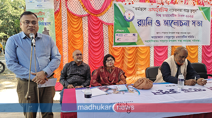 ১৪ নভেম্বর বিশ্ব ডায়াবেটিস দিবস উপলক্ষে গাইবান্ধার সাদুল্লাপুরে র‌্যালি ও আলোচনা সভা অনুষ্ঠিত হয়েছে। ‘কর্মস্থলে ডায়াবেটিস সচেতনতা গড়ে তুলুন’- এই প্রতিপাদ্যে সাদুল্লাপুর ডায়াবেটিক সমিতির উদ্যোগে মঙ্গলবার (১৮ নভেম্বর) এ কর্মসূচি পালন করা হয়।